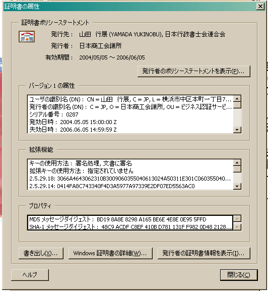 @「証明書を表示」をクリックすると次の画面が表示されます。