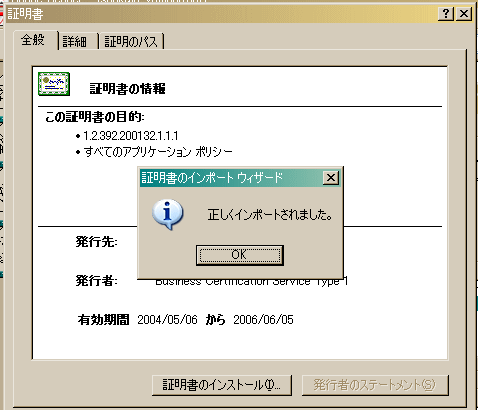 Eこれで山田行展の電子証明書のインストールは終了です。