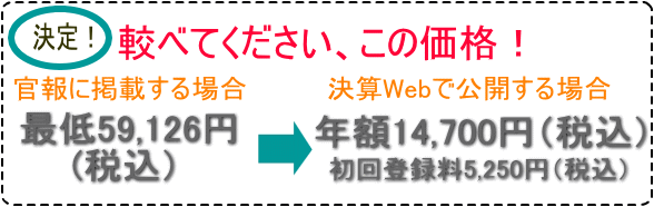 決算Webは格安で御社の決算公告用ホームページを作成し、このサイトで代行公開いたします。